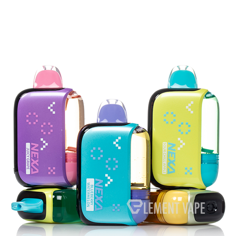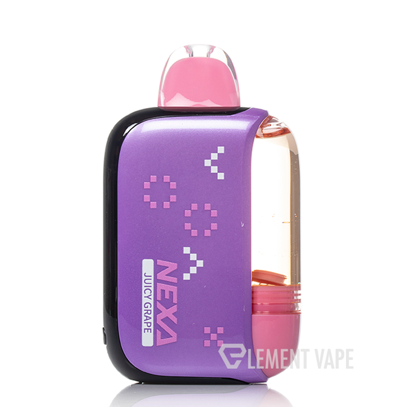 Discover the NEXA PIX 35K Disposable, featuring a separated 16mL capacity to preserve eJuice freshness, up to 35K max puffs, dual 1.0ohm coils, and two-mode operation. The NEXA Pix, short for Pixie, maintains a separate sealed eJuice capacity, allowing the user to break the eJuice freshness seal. Switch between Normal Mode for up to 35,000 puffs and Turbo Mode for 30,000 puffs of intensified performance. The crystal-clear tank lets you easily keep an eye on your e-liquid levels.